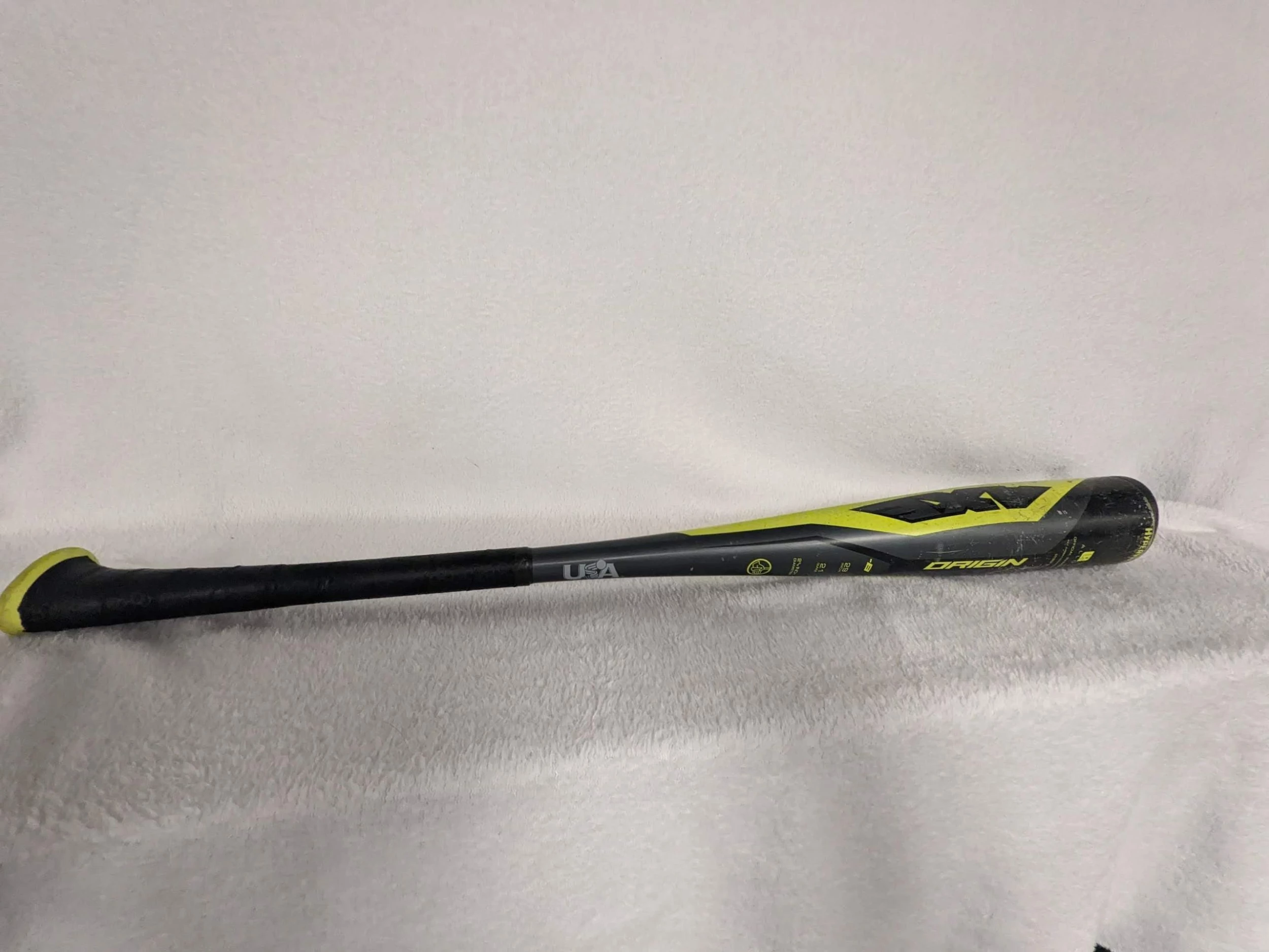 Axe Origin Baseball Bat Official USA Baseball Size 29 In 21 Oz Color Yellow, Gray, and Black Condition Used