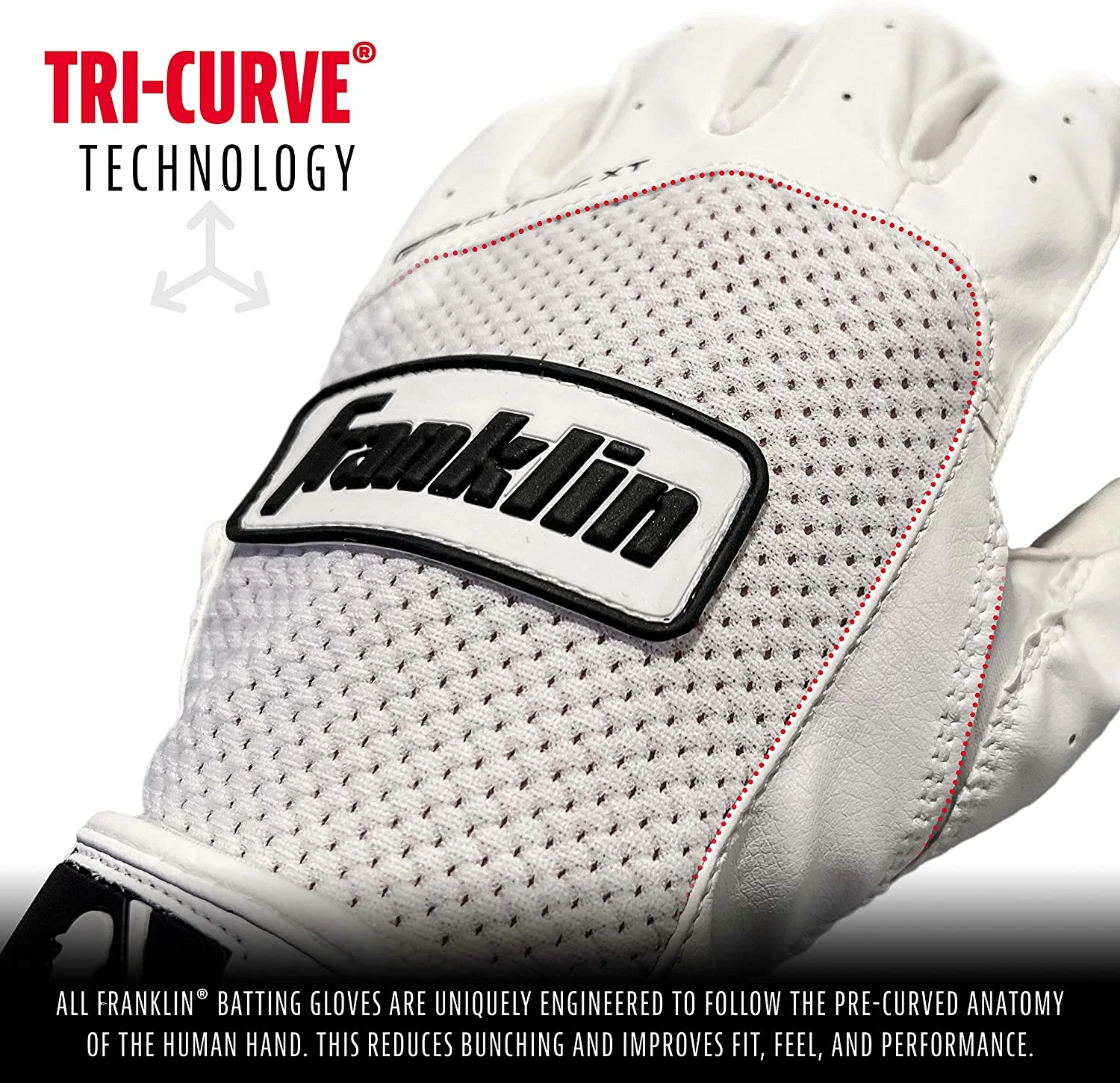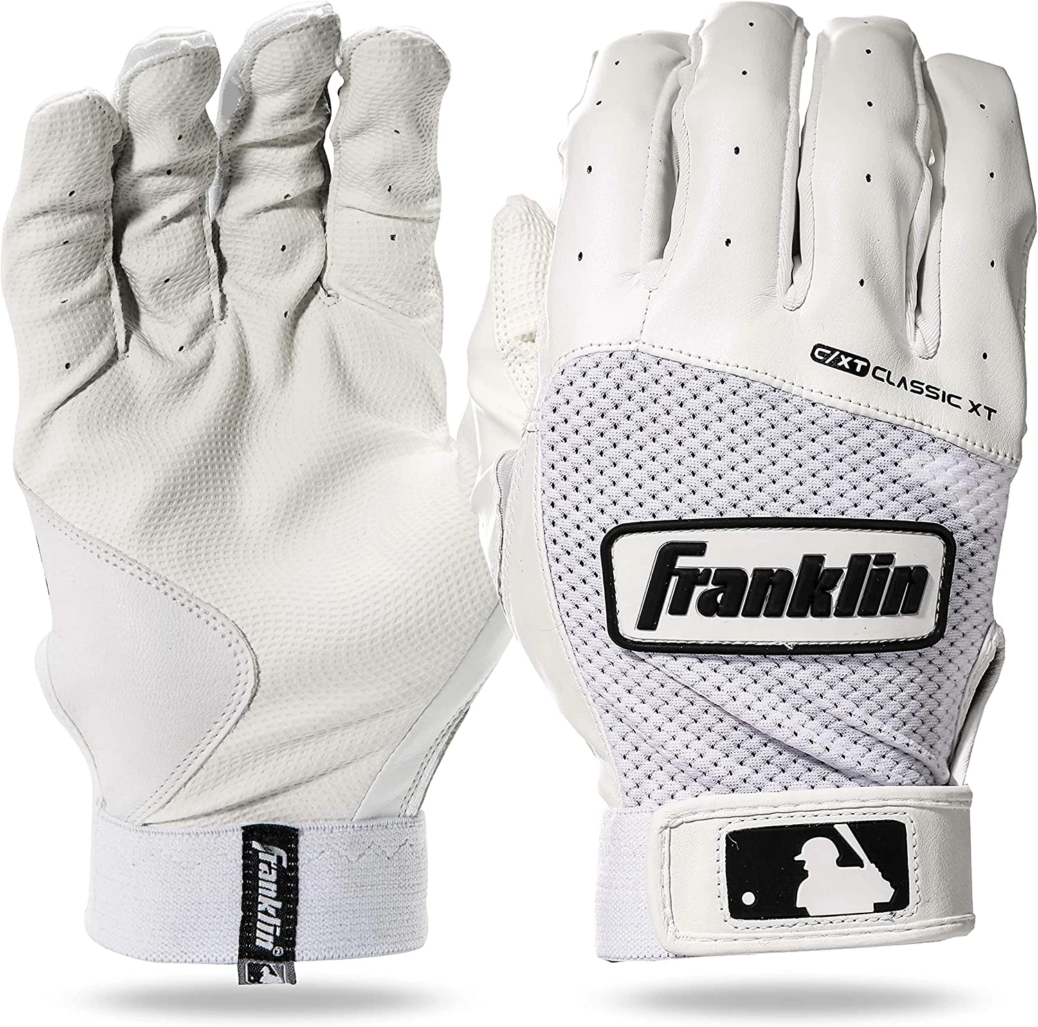 Franklinβs MLB Classic XT is a flexible, multi-functional batting glove with an athletic fit, feel, and look. Itβs the ideal adult batting glove, providing protection and a state-of-the-art grip. With multiple sizes available, you can find the ideal fit for your MVP. When it comes to batting, gloves are crucial to prevent sweaty hands from losing their grip on the bat. Weβve designed the Classic XT with a digitally-etched microfiber material for a superior grip that lets you feel every swing and connection with the ball. The durability of genuine leather connects with the microfiber cloth for a hybrid construction that gives you targeted strength and sensitivity exactly where you need it for peak performance. Also, our tri-curve technology provides a perfect fit that molds to your hand.